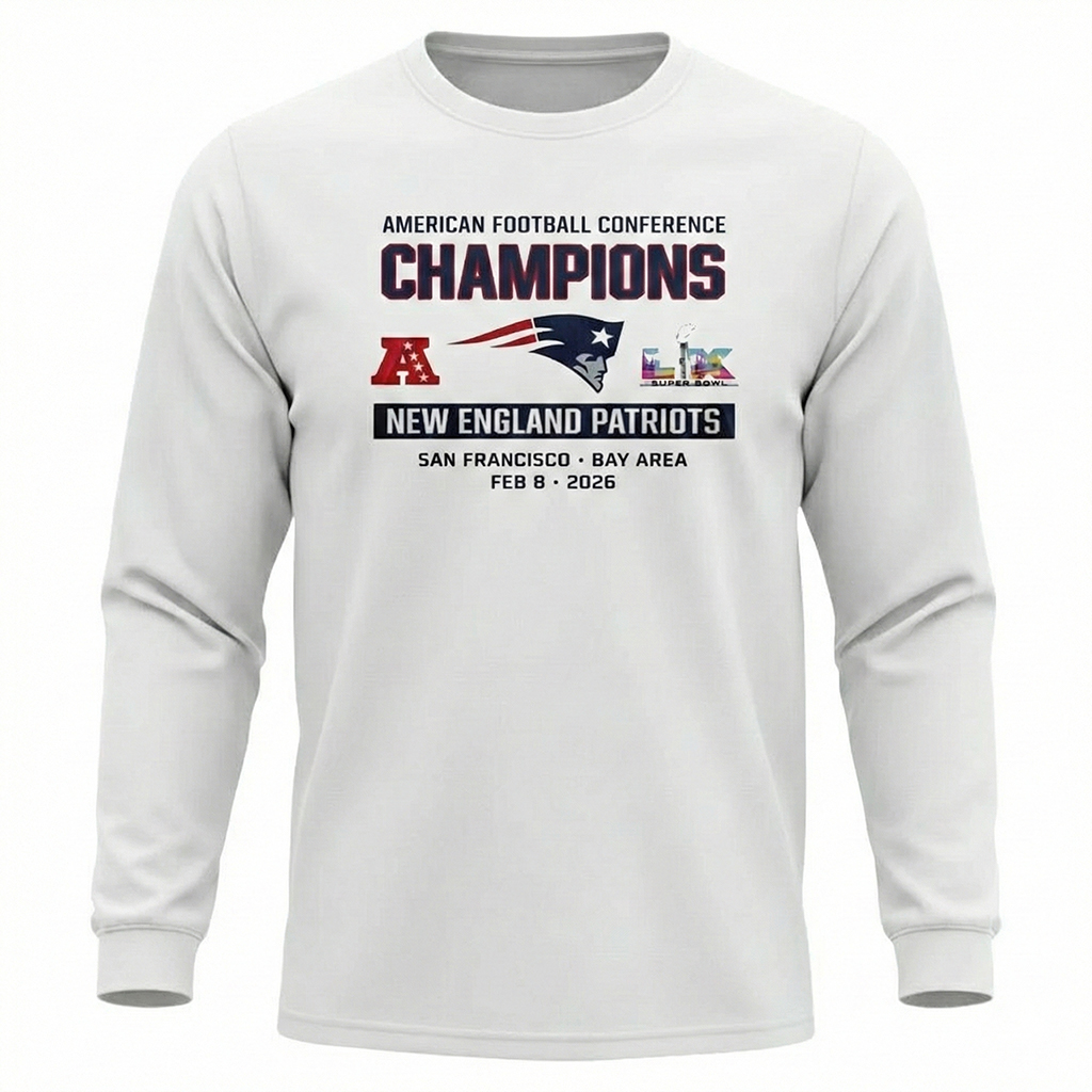 New England Patriots AFC Champions 12 Time White Sweatshirt Football NFL Merch Best Gift For Football Fans