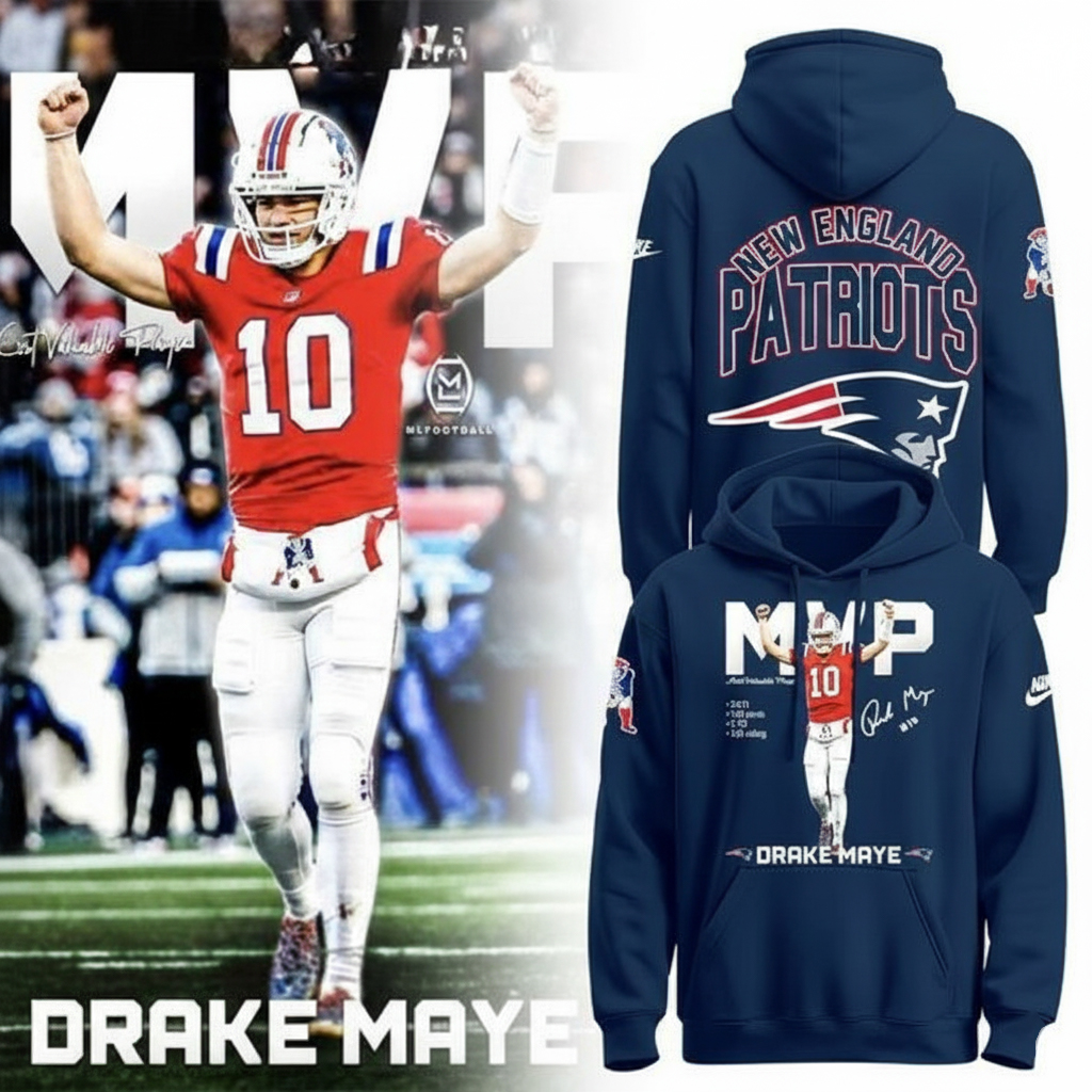 New England Patriots Drake Maye MVP 10 Straight Wins Hoodie NE Patriots Merch Gift For Football Fans