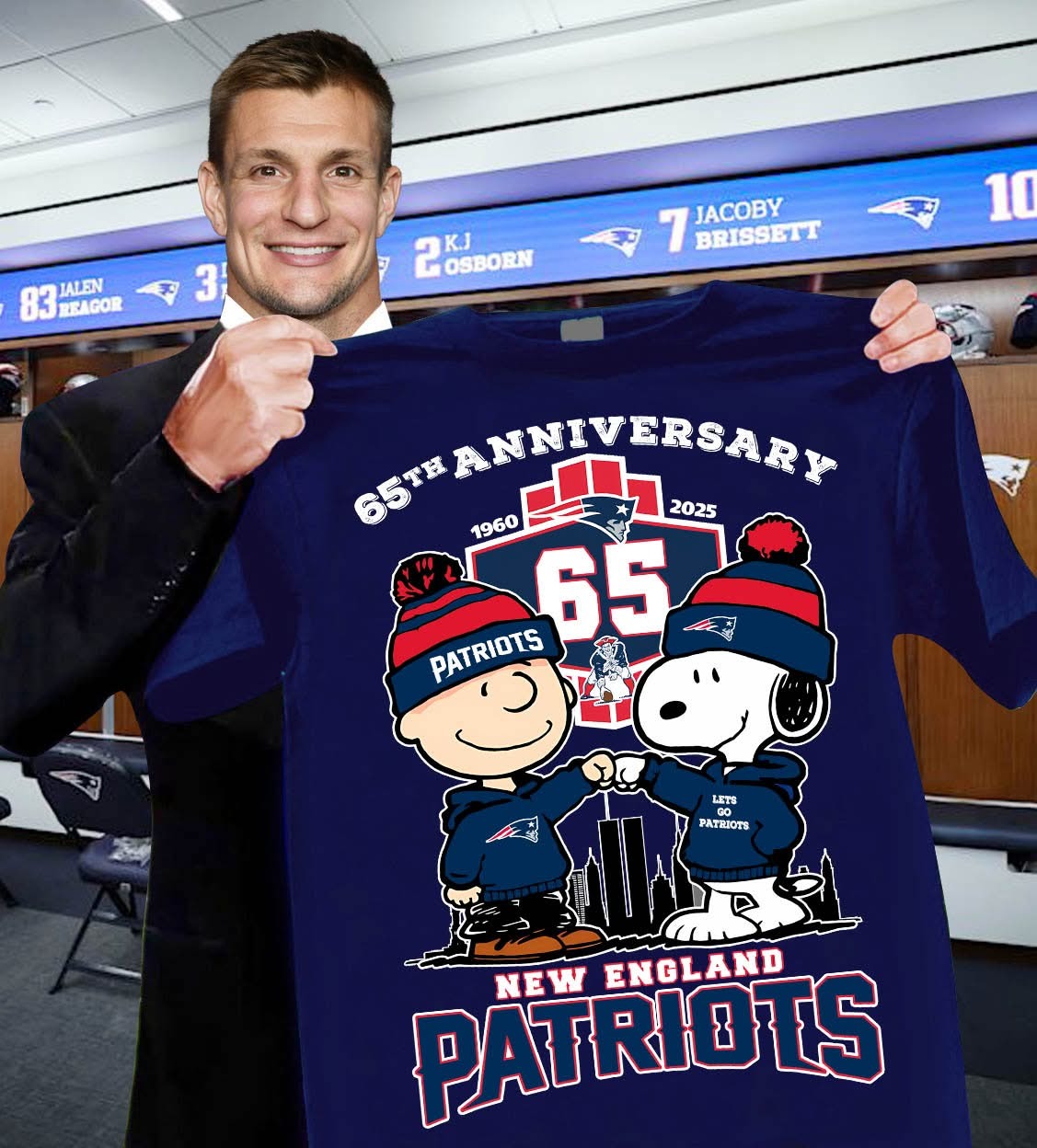 New England Patriots Football Snoopy 65th Anniversary 1960 to 2025 T-Shirt Best Gift For Football Fans
