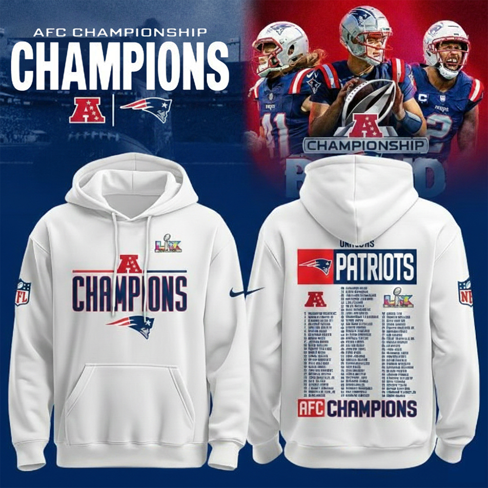 New England Patriots Merch 2025 AFC Champions United As Patriots Hoodie New England Patriots Apparel Football Fans Gifts