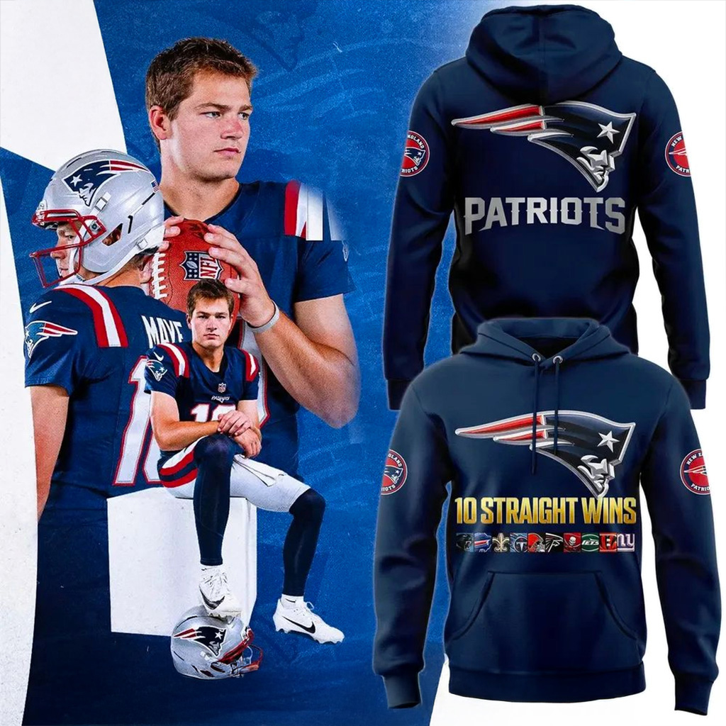 New England Patriots TEN Wins In A Row For The Pats Hoodie NFL Football Patriots Merch Best Gift.