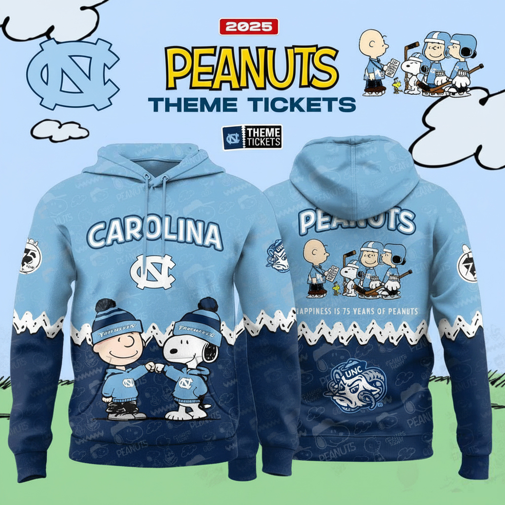 North Carolina Tar Heels 75th Anniversary Of Peanuts Hoodie Tar Heels Merch Best Basketball Fans Gifts