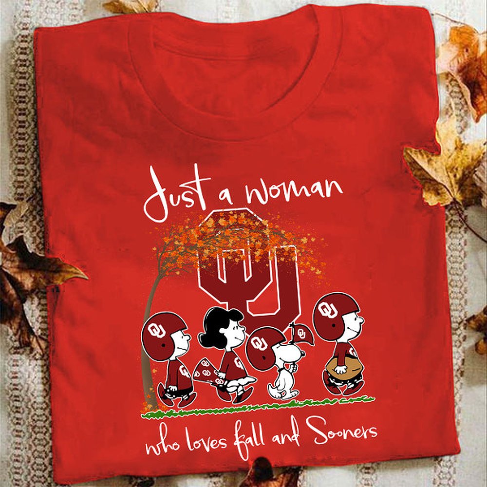 Oklahoma Sooners Just A Woman Who Loves Fall T-Shirt Sooners Merch Best Gift For Football Fans