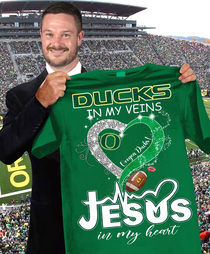 Oregon Ducks Football Faith Shirt Ducks In My Veins Jesus In My Heart Best Gift For Football Fans