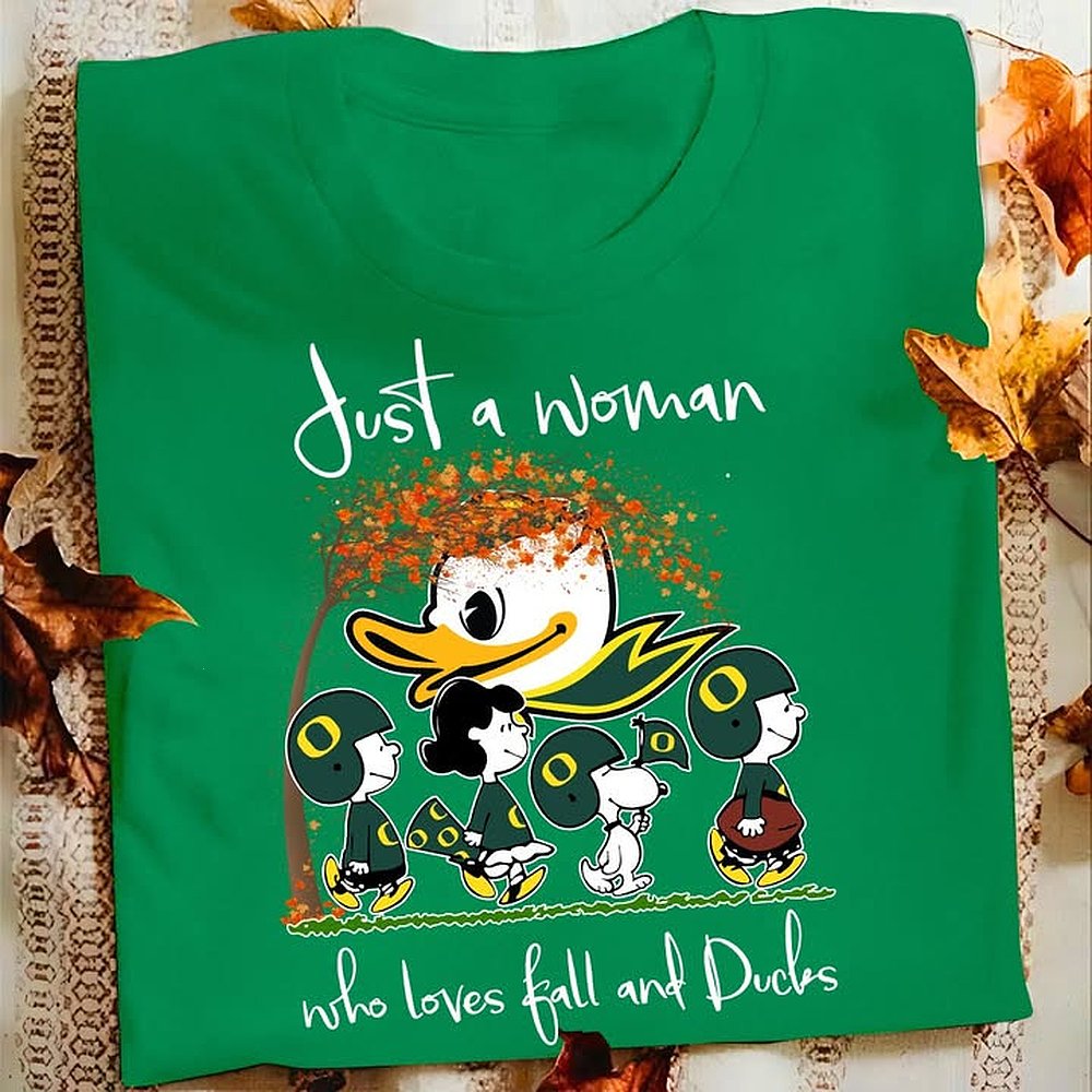 Oregon Ducks Just A Woman Who Loves Fall T-Shirt Ducks Merch Best Gift For Football Fans