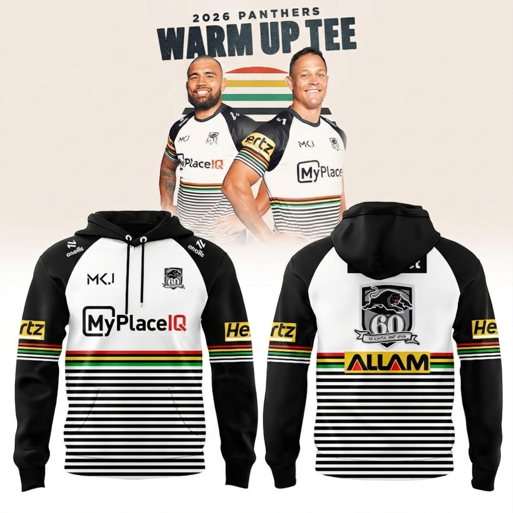 Penrith Panthers Warm Up Tee Hoodie Panthers Merch Unique Gift For Rugby League Fans.