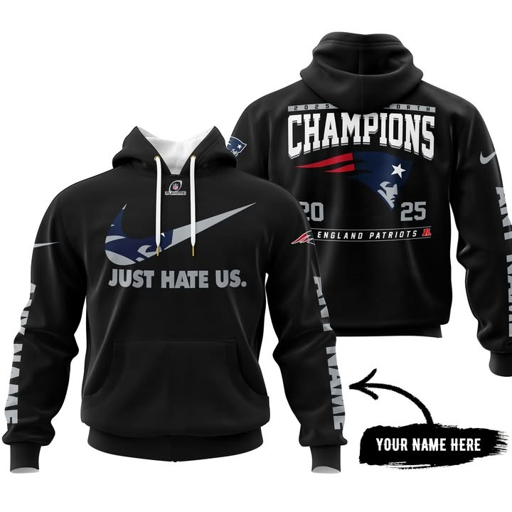 Personalized New England Patriots Football AFC North Champions 2025 Black Hoodie Custom Fan Merch Best Gift For Fans.