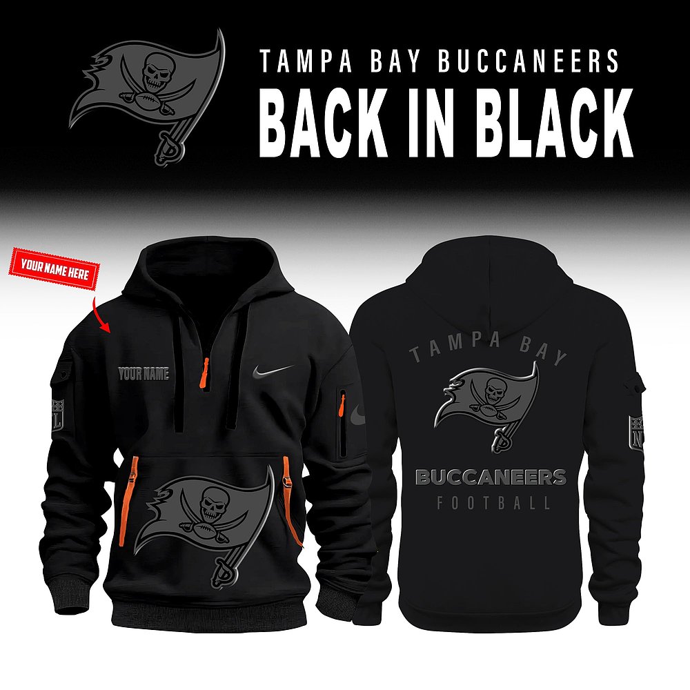 Personalized Tampa Bay Buccaneers Back In Black Quarter Zip Hoodie NFL Football Custom Apparel Best Gift For Fans