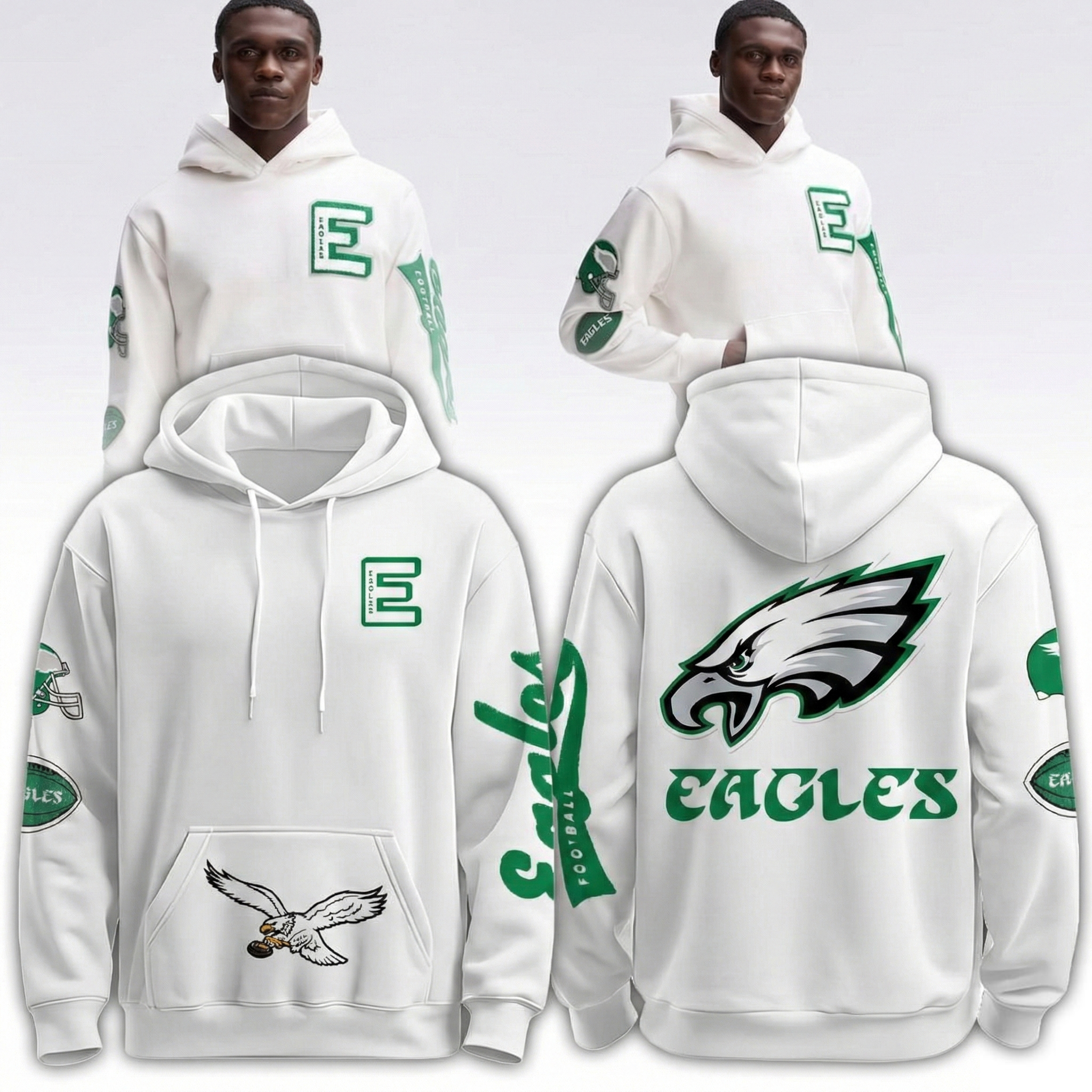 Philadelphia Eagles NFL White Iconic Hoodie Eagles Merch Best Gift For Football Fans.