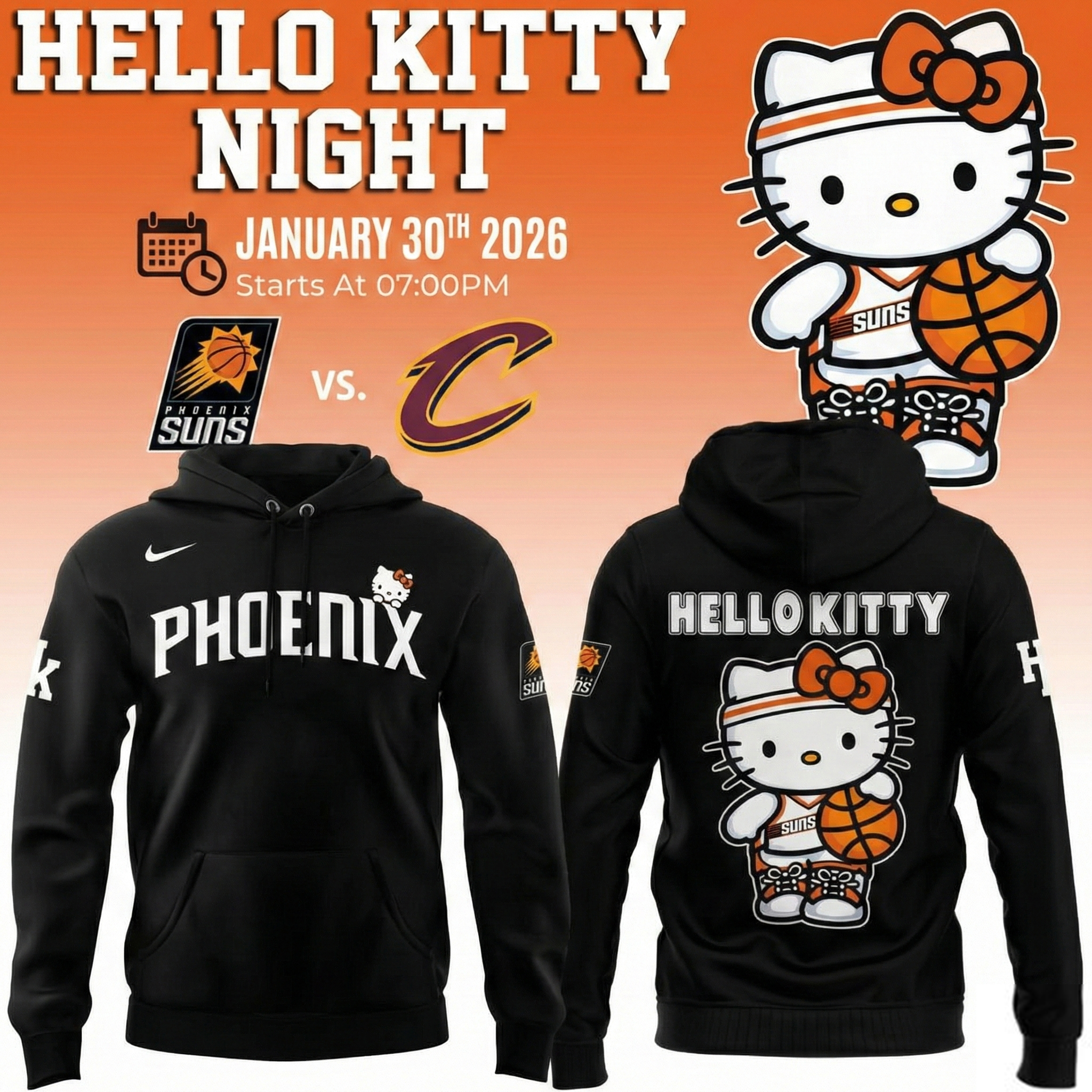 Phoenix Suns Hello Kitty Specialty Game Night Hoodie Suns Apparel Best Gift For NBA Fans Lovers.
