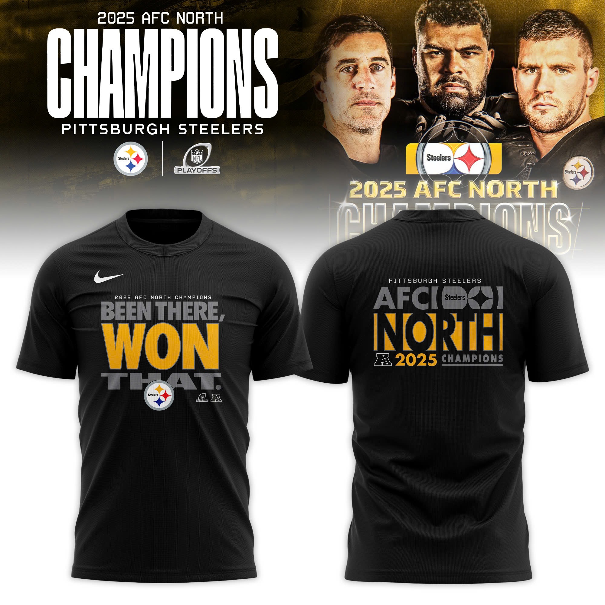 Pittsburgh Steelers 2025 Afc North Division Champions Locker Room T-Shirt Gift For Friends.