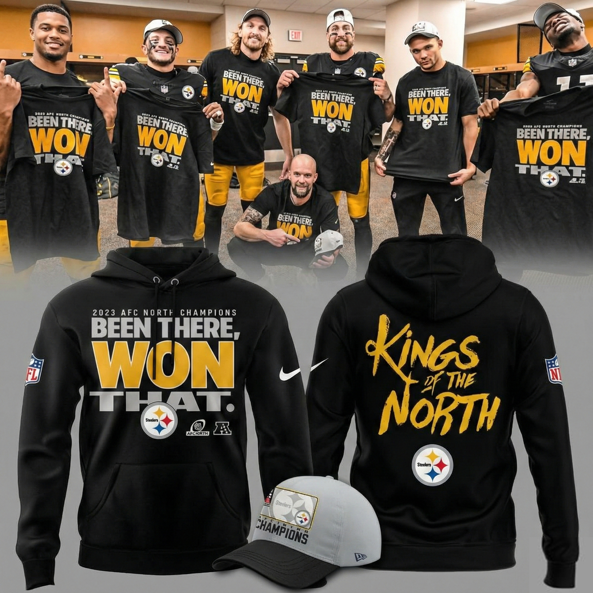 Pittsburgh Steelers Merch 2025 AFC North Champs King Been There Won That Hoodie Steelers Apparel NFL Fans Gifts