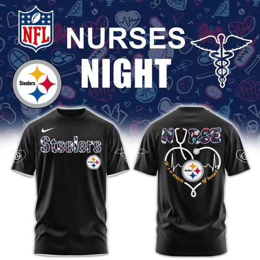 Pittsburgh Steelers Nurses Appreciation Black T-Shirt Presents For Football Fans.