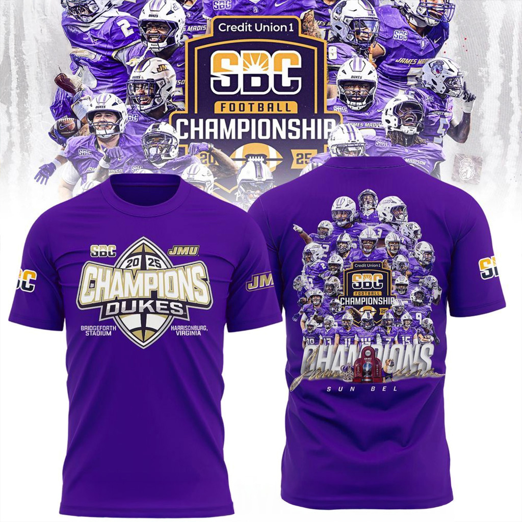 Purple James Madison Dukes 2025 Sun Belt Football Champions T-Shirt College Football Merch Best Gift