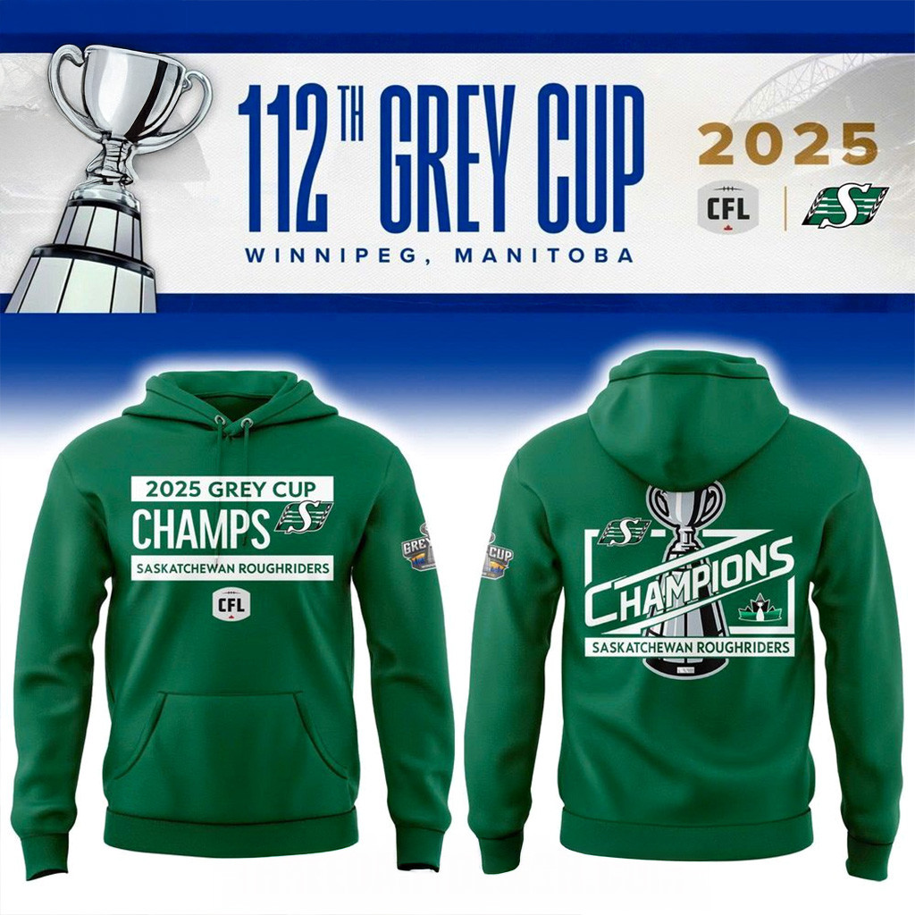 Saskatchewan Roughriders 2025 Grey Cup Champions Hoodie Roughriders Merch Best Gift For Football Fans.