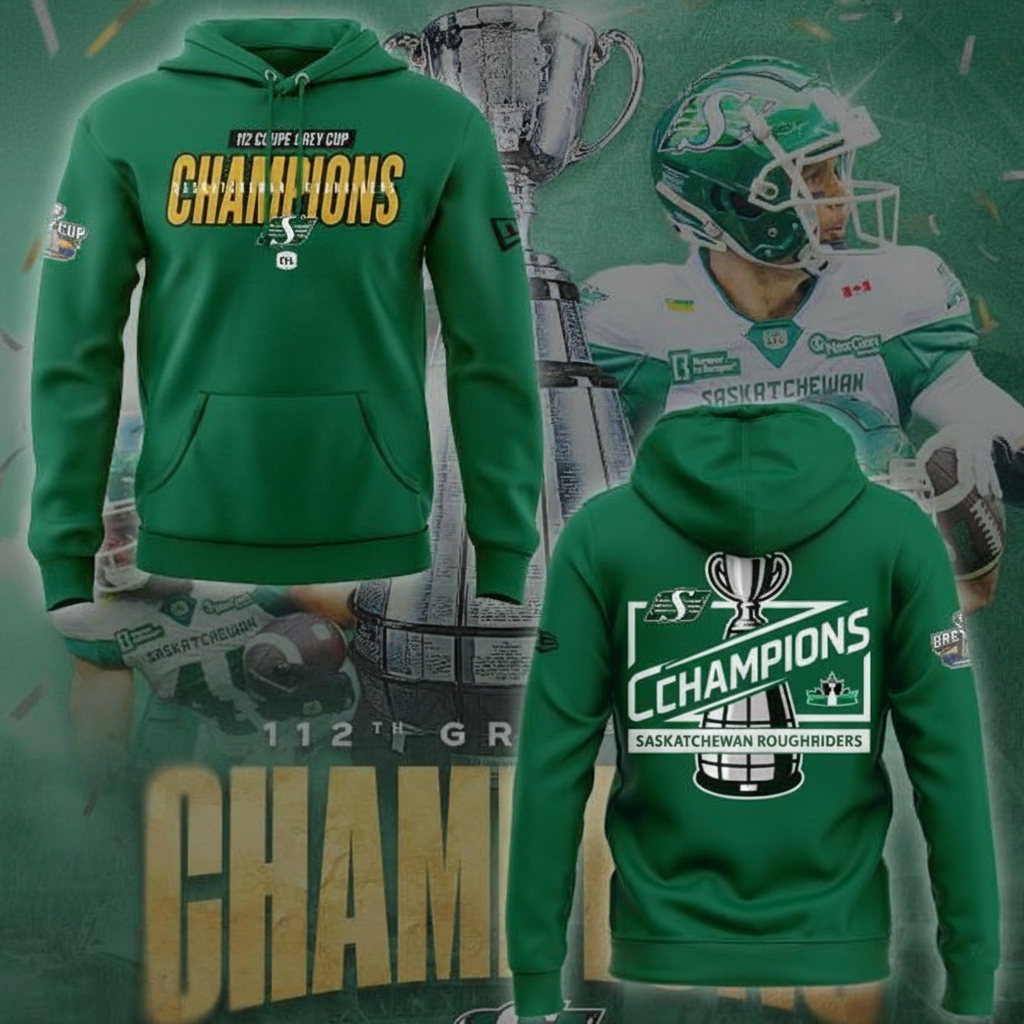 Saskatchewan Roughriders Grey Cup Champions Hoodie Roughriders Merch Best Gift For Football Fans.