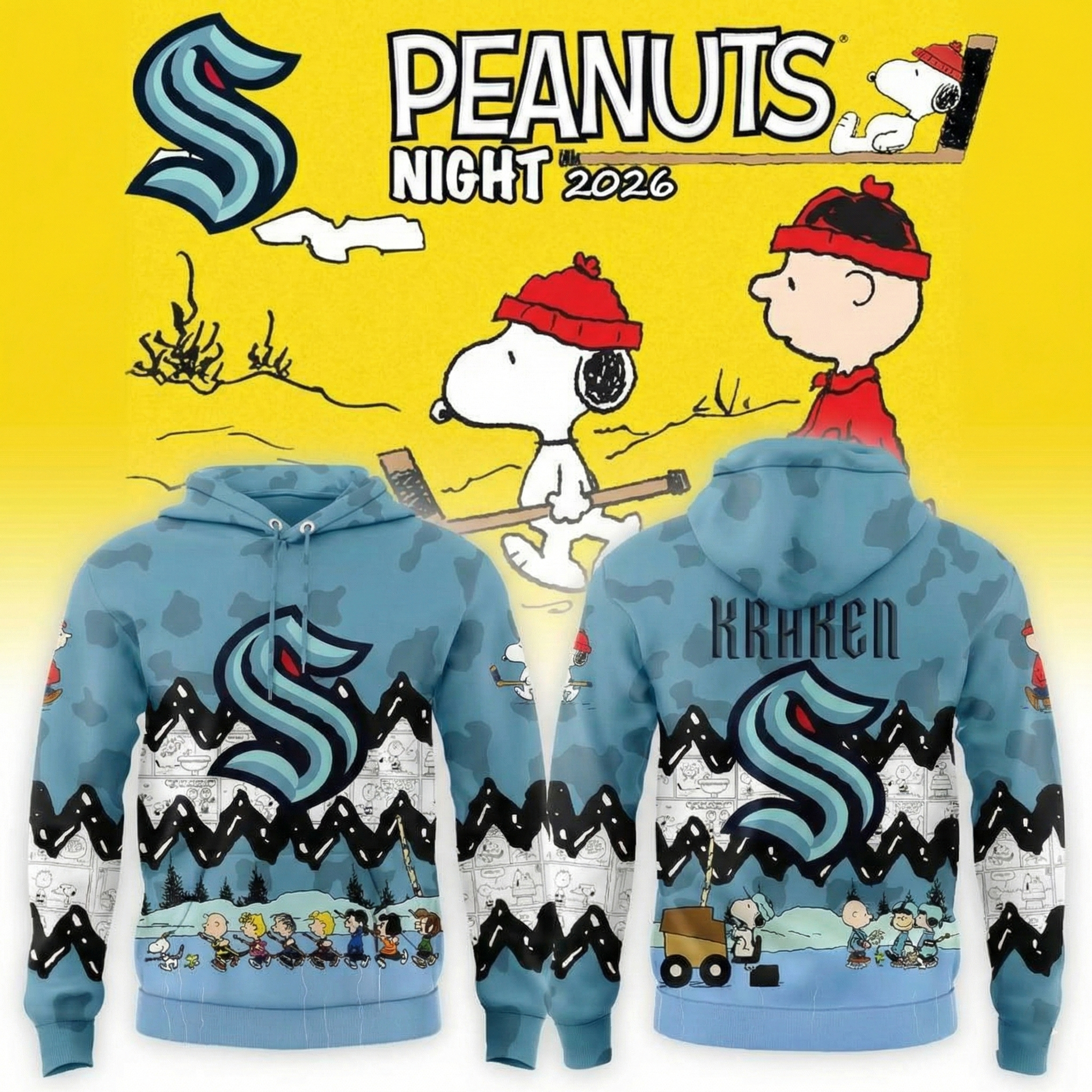 Seattle Kraken x Peanuts Night 2026 Hoodie SEA Kraken Merchandise Best Gift For Hockey Fans