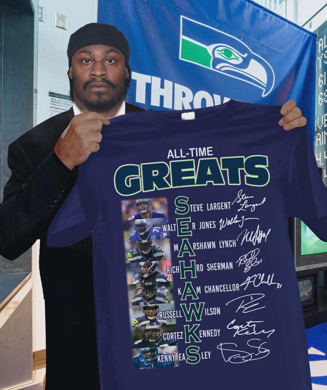 Seattle Seahawks All Time Greats Skyline Team Players T-Shirt NFL Football Team Apparel Best Gift For Fans