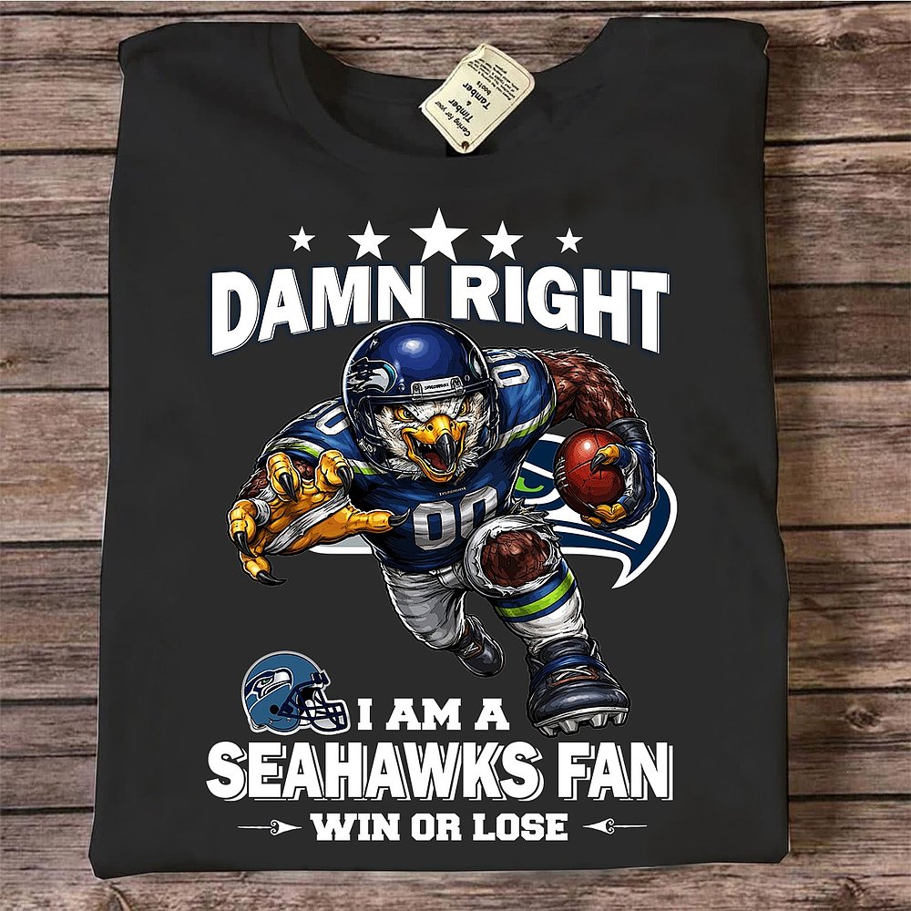 Seattle Seahawks Damn Right I Am A Seahawks Fan Win Or Lose T-Shirt NFL Football Best Gift For Fans