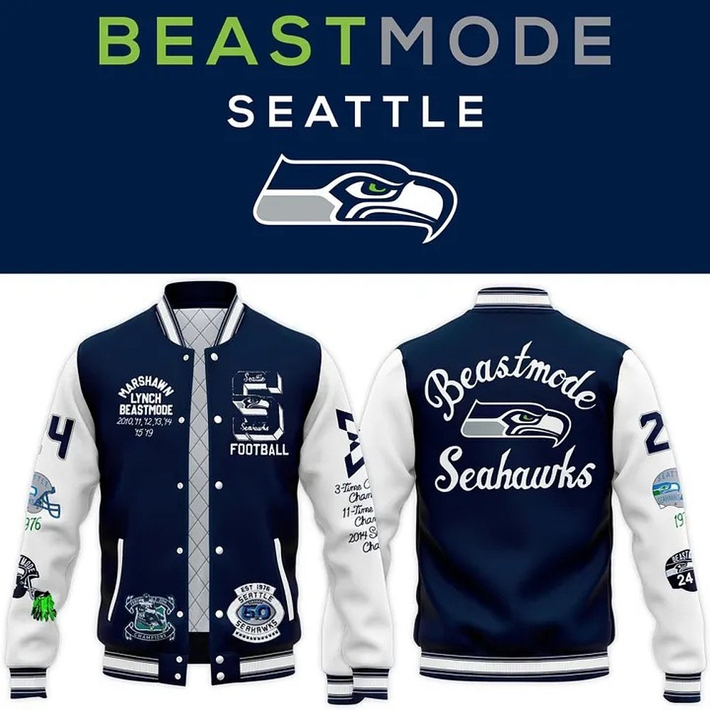 Seattle Seahawks Football The Beastmode Seattle Legacy Varsity Jacket NFL Football Player Tribute Apparel Best Gift For Fans