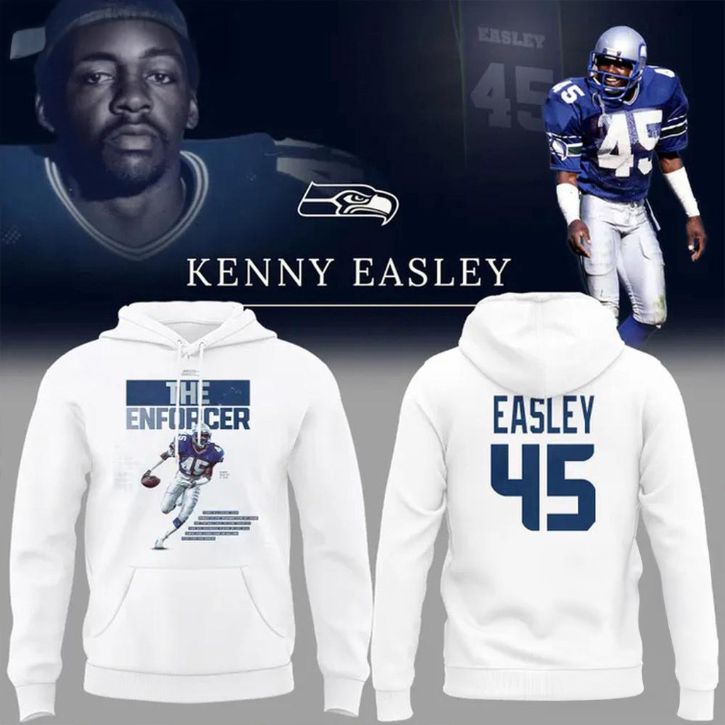 Seattle Seahawks Kenny Easley Tribute White Hoodie Seahawks Merch Best Gift For Football Fans.