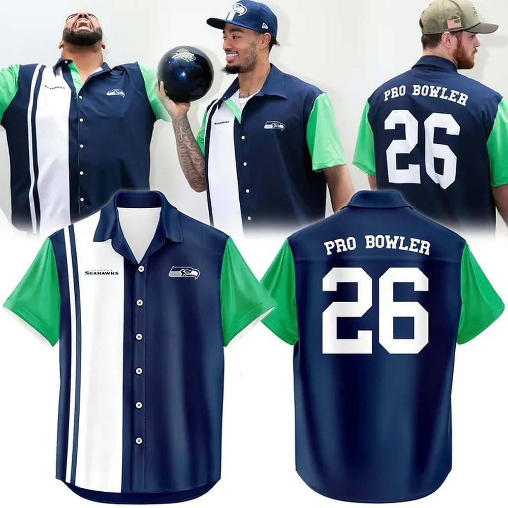 Seattle Seahawks NFL Microcell Bowling Button Up Shirt Football Casual Apparel Best Gift For Seahawks Fans.