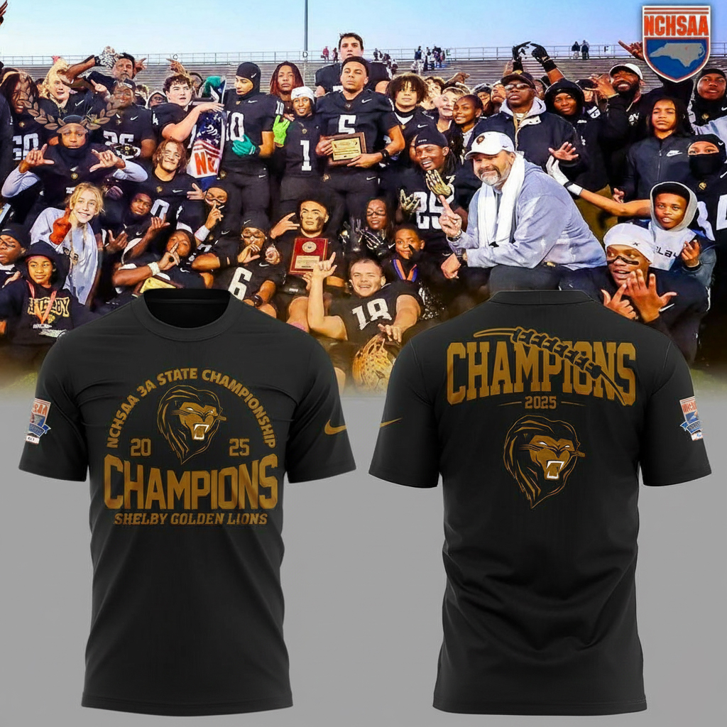Shelby Golden Lions 3A State Champions 2025 T-Shirt Golden Lions Merch Best Football Fans Gifts.