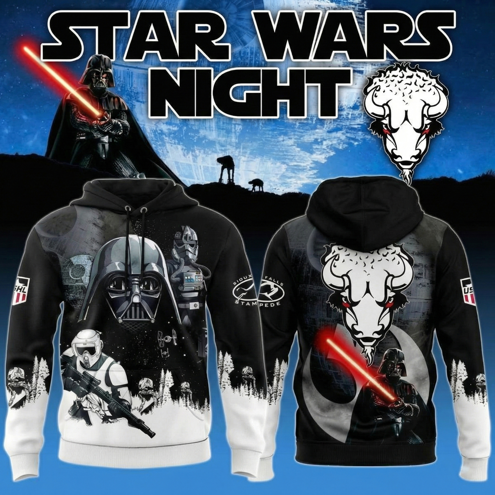 Sioux Falls Stampede Star Wars Night Hoodie SF Stampede Apparel Unique Hockey Lovers Gifts.