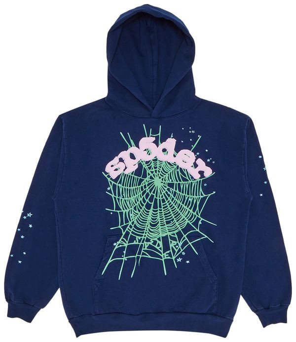 Sp5der OG Web Hoodie Navy 555 Spider Clothing Spider Young Thug Merch Gifts.