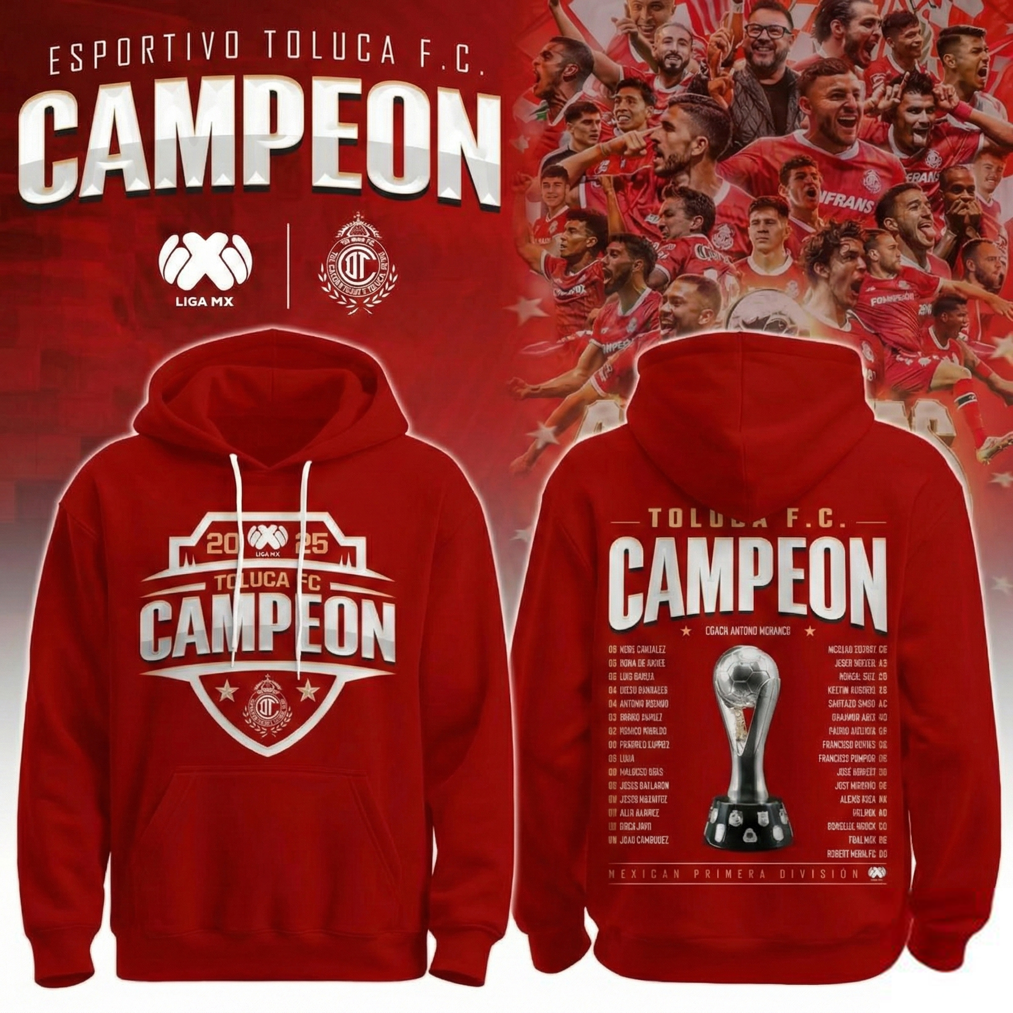 Toluca FC Campeones Liga MX Champions 2025 Hoodie Toluca Merch Best Gift For Soccer Fans