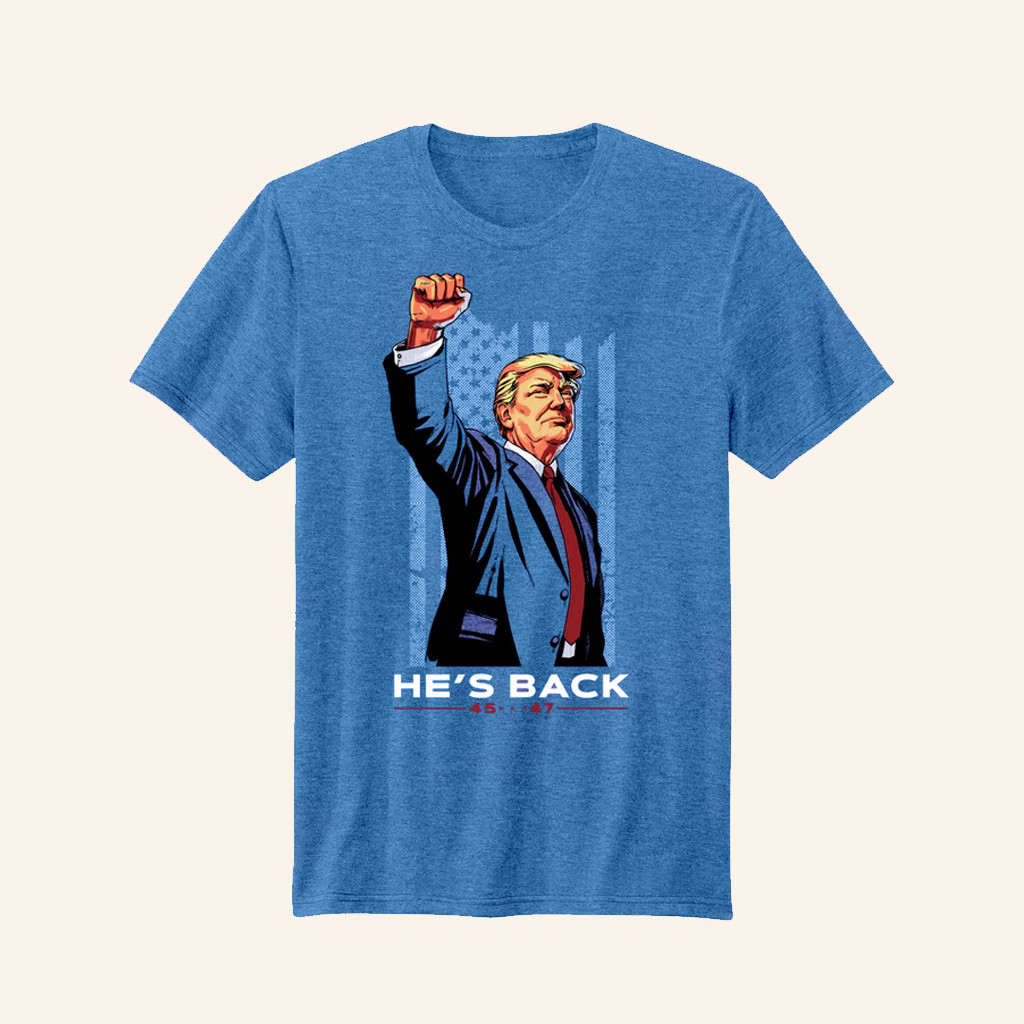 Trump He’s Back T-Shirt 45 47 MAGA Apparel For Trump Supporters