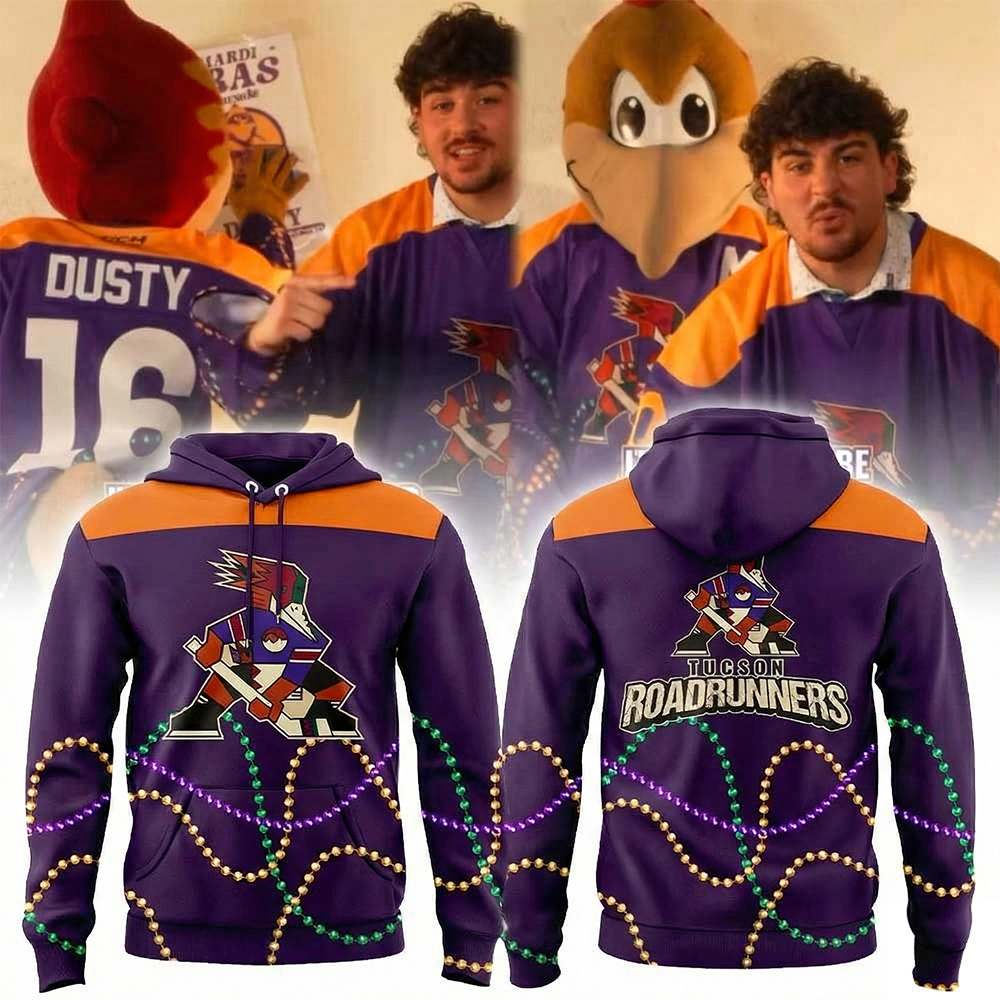 Tucson Roadrunners Mardi Gras Night Hoodie Roadrunners Merch Festive Gift For AHL Fans.