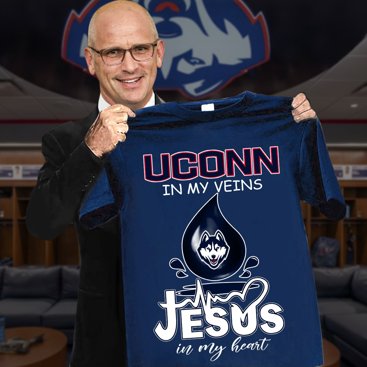 Uconn In My Veins Jesus In My Heart T-Shirt Merch Best Gifts For Uconn Huskies Fans.