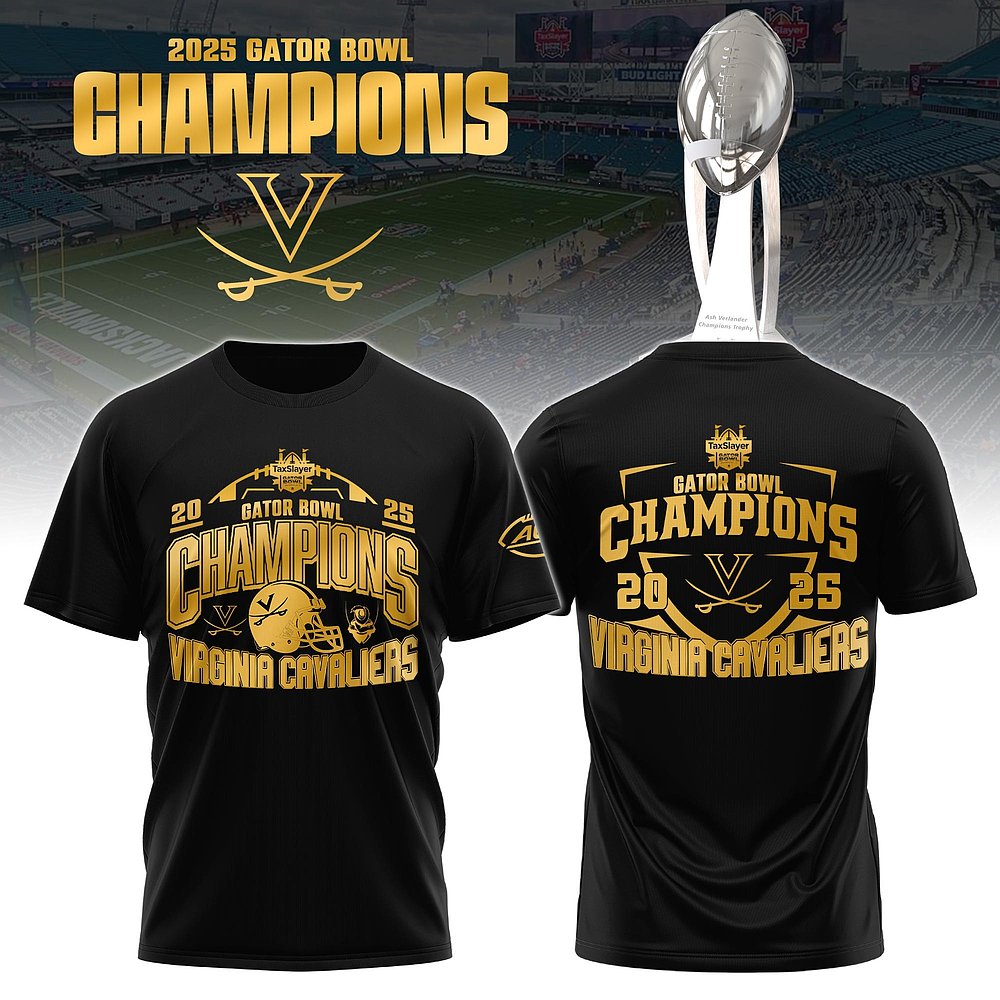 Virginia Cavaliers 2025 TaxSlayer Gator Bowl Champions Black T-Shirt Best Gift For Football Fans.