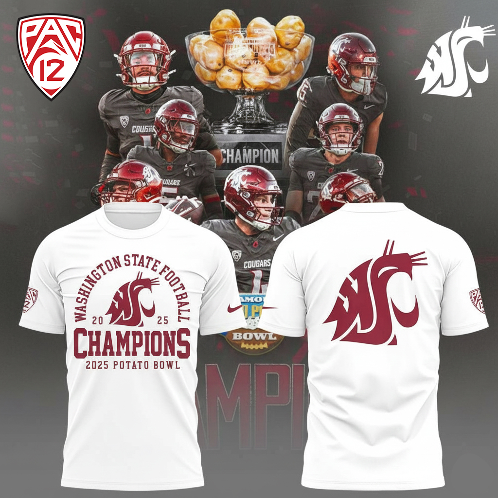 Washington State Football 2025 Potato Bowl Champions T-Shirt Cougars Apparel Best Gift For Fans.