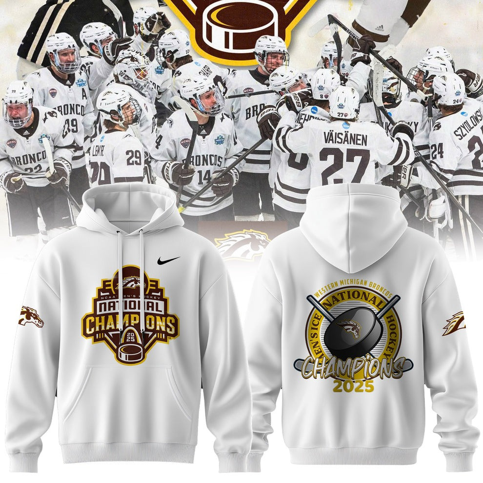 Western Michigan Broncos National Champions Hoodie 2025 Hockey Frozen Four Apparel For Sale.