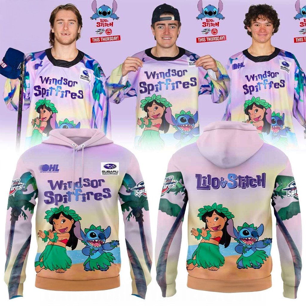 Windsor Spitfires x Lilo And Stitch Hockey Hoodie Spitfires Merch Best Gift For Hockey Fans