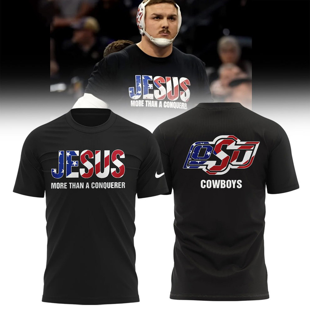 Wyatt Hendrickson Jesus Shirt More Than A Conquerer OSU Cowboy Wrestling Oklahoma State.